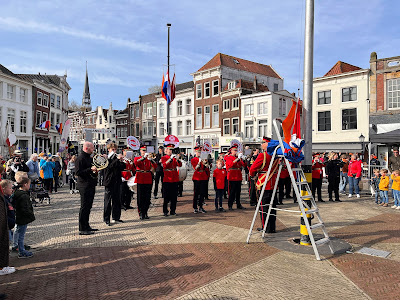 Voor mij begon Koningsdag om 10.00 uur op de Markt met de traditionele aubade. Tijdens deze bijeenkomst werd de vlag met wimpel gehesen, zongen we met elkaar het Wilhelmus en werden de gedecoreerden aan het publiek voorgesteld.
